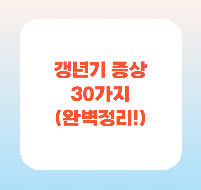 갱년기 증상 30가지는 누구에게나 올 수 있는 자연스러운 신체 반응입니다.