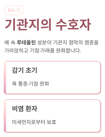 1. 루테올린 성분으로 기관지 건강 사수!2. 소화 효소가 많아 천연 소화제 역할!