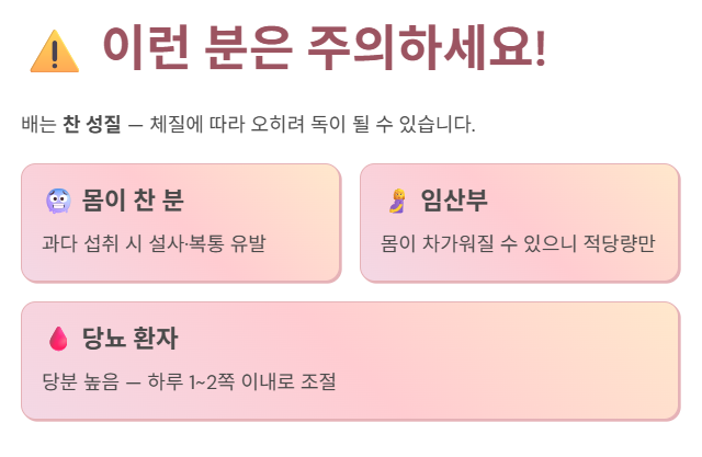 하지만 이렇게 좋은 배도 체질에 따라서는 오히려 속을 불편하게 할 수 있다는 사실, 알고 계셨나요?